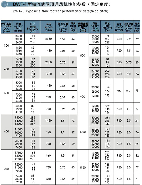| DWT系列屋頂式通風(fēng)機(jī)是國(guó)家經(jīng)貿(mào)委“雙加工程”的大型技改項(xiàng)目,已列入國(guó)家級(jí)“星火”計(jì)劃,獲得國(guó)家實(shí)用性新型專利。本系列風(fēng)機(jī)具有規(guī)格形式多、應(yīng)用范圍廣、效率高、噪聲低、質(zhì)輕、高強(qiáng)度、耐腐蝕、運(yùn)轉(zhuǎn)平穩(wěn)、壽命長(zhǎng)、外型美觀等眾多優(yōu)點(diǎn)。 該類風(fēng)機(jī)廣泛應(yīng)用于發(fā)電廠、化工廠、橡膠廠、機(jī)械制造等車間和高級(jí)民用建筑的送、排風(fēng);如:廣州電廠、廣東惠州電廠、廣東中山電廠、廣東佛山電廠、廣東汕頭電廠、廣東陽(yáng)江電廠、深圳馬灣電廠、大亞灣核電廠、珠海發(fā)電廠、四川綿陽(yáng)電廠,孟加拉國(guó)吉大港電廠等三十多個(gè)國(guó)家發(fā)電廠。 本系列屋頂風(fēng)機(jī)共分三大類:①軸流式屋頂風(fēng)機(jī)(DWT-I),直徑自Φ300-Φ2400mm,共十七種機(jī)號(hào);②離心式屋頂風(fēng)機(jī)(DWT-Ⅱ),有Φ300-Φ1000 mm九種機(jī)號(hào);③混流式屋頂風(fēng)機(jī)(DWT-Ⅲ),直徑自Φ280-Φ800 mm,共十種機(jī)號(hào),還可根據(jù)用戶需要提供其它機(jī)號(hào)風(fēng)機(jī)。 |